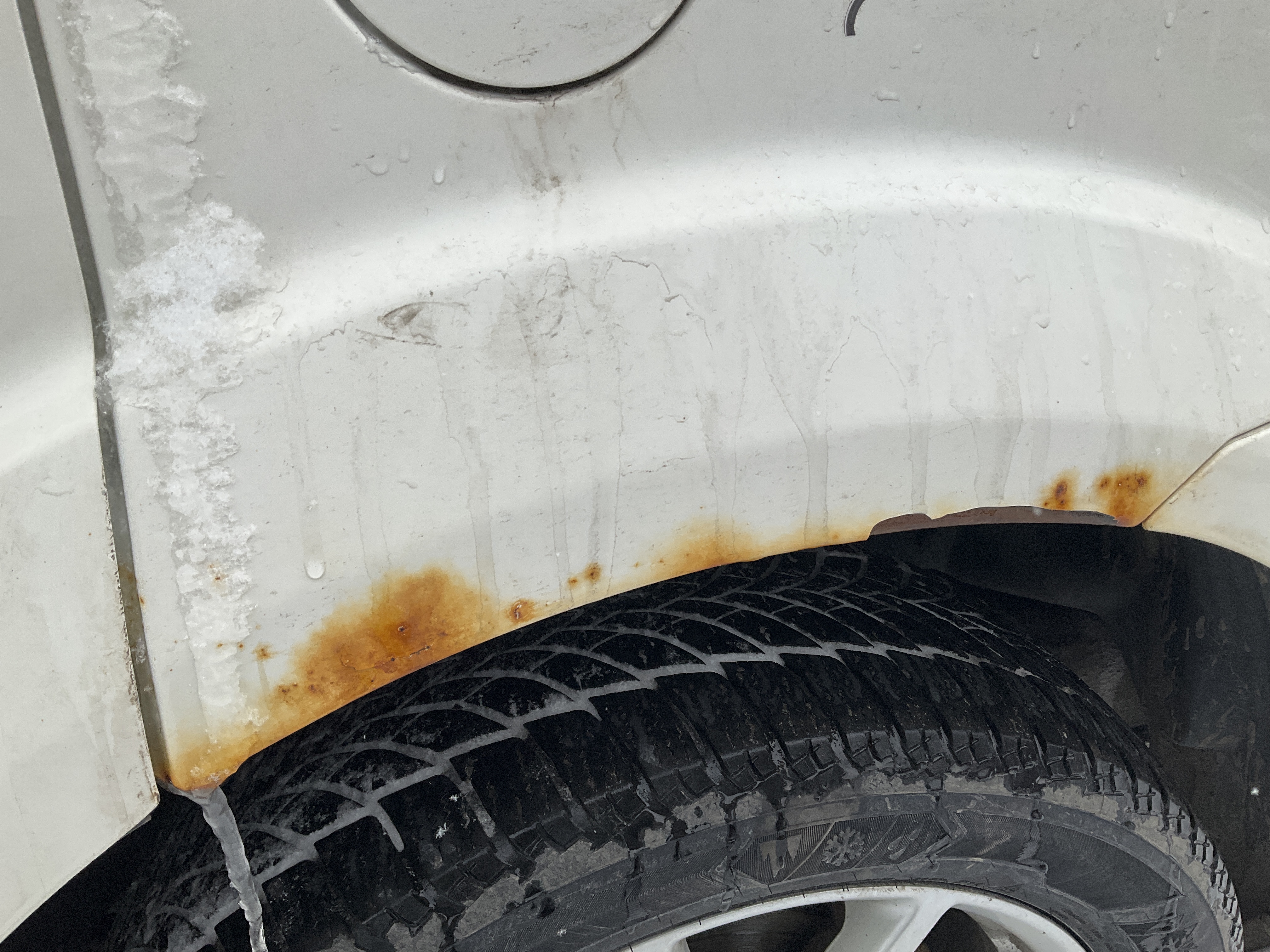- Aile avant gauche rouillée et écaillée