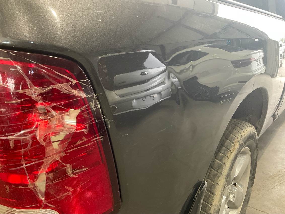 • Pare-choc arrière bossé et grafigné